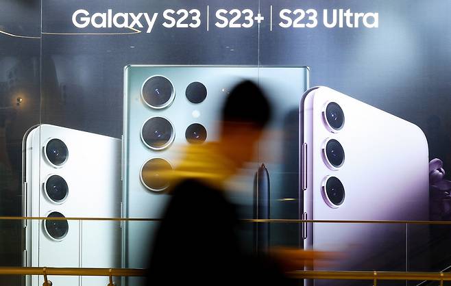 | ▲ 삼성전자의 올해 1분기 영업이익이 96%가량 줄어든 것으로 발표된 7일 오전 서울 삼성전자 서초사옥 딜라이트샵 갤럭시 광고 앞으로 시민이 지나고 있다. 삼성전자는 이날 연결 기준 올해 1분기 영업이익이 6천억원을 기록해 지난해 동기보다 95.75% 감소한 것으로 잠정 집계됐다고 7일 공시했다. 삼성전자의 분기 영업이익이 1조원대 이하를 기록한 것은 2009년 1분기(5천900억원) 이후 14년 만이다. 2023.4.7 |