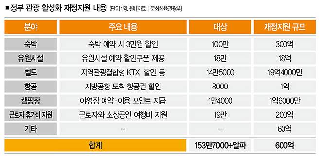 전방위적인 할인행사는 앞서 언급한 600억원의 정부 재정지원 가운데 400억원이 투입되는 사업이다. 100만명에게 숙박예약 시 3만원을 할인해주는 사업(300억원), 철도 이용객에게 요금을 할인해주는 사업(19억4000만원) 등이 포함돼 있다. 수혜자는 약 135만명이다.