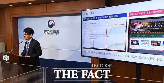 [더팩트ㅣ세종=이동률 기자] 유성욱 공정거래위원회 시장감시국장이 11일 오전 세종시 정부세종청사에서 구글 앱마켓 관련 시장지배적지위 남용행위 제재 결과를 발표하고 있다.