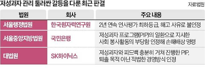 저성과자 인사 조치가 부당하다며 근로자가 낸 소송에서 회사가 패소하는 일이 잇따르고 있다.