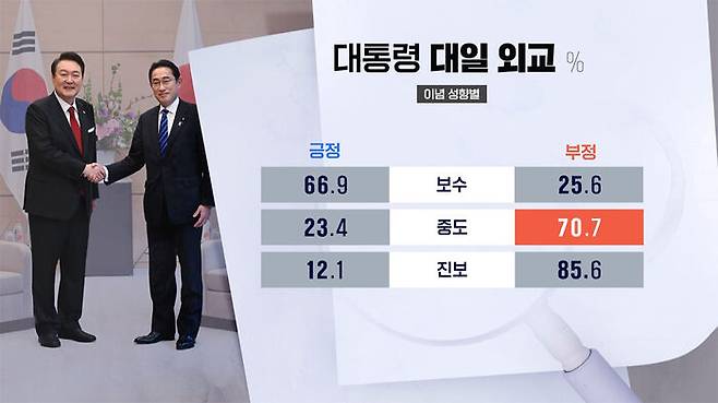 SBS 여론 조사 결과, 어제(10일)에 이어서 전해드리겠습니다. 먼저 최근 윤석열 대통령이 일본과 정상회담하고, 또 과거사 문제 해결책을 내놓은 데 대해서 어떻게 생각하는지 물었더니 59.7%가 부정적으로 답했습니다.