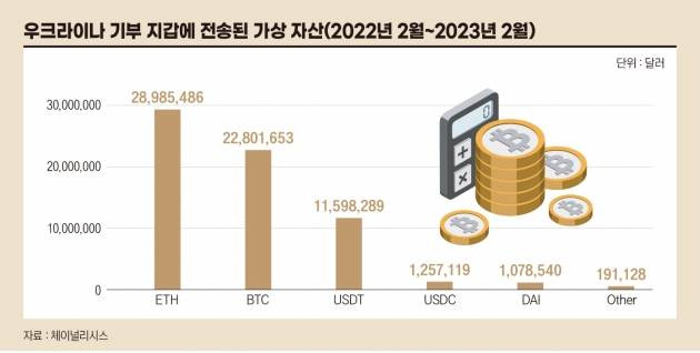 실제로 2022년부터 전쟁이 계속되고 있는 우크라이나에서는 가상 자산이 이재민을 돕는 데 중요한 역할을 하고 있다. 2023년 2월 기준 우크라이나 정부가 제공한 가상 자산 주소로 기부된 금액은 총 7000만 달러(약 897억원)에 육박한다. 그중 70% 이상이 이더리움(ETH)과 비트코인(BTC)으로 이뤄졌다. 이와 함께 대체 불가능한 토큰(NFT) 형태로 이뤄진 기부 사례로는 우크라이나DAO가 우크라이나 국기 NFT를 650만 달러(약 83억원)에 경매에 부친 사례가 있었다.