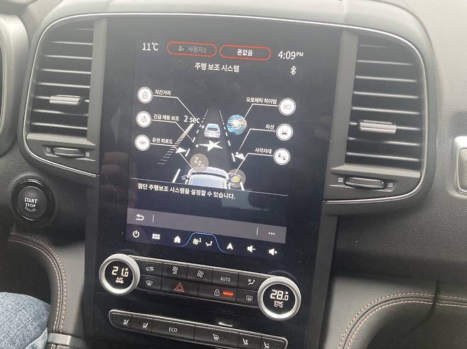 실내는 르노 실용성의 숨은 매력을 엿볼 수 있다. 운전자 머리 뒤를 받쳐주는 목받침은 피로를 덜어주고 기능성 소재를 사용한 그린 나파 기반 가죽 시트는 안락함을 구현했다. 세로형 9.3인치 디스플레이는 화면 크기에 비해 보다 시원한 시야감을 제공했다.