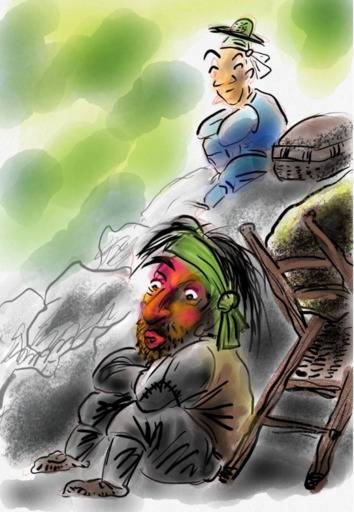 차돌은 코피가 터졌다. 개울에 내려가 코피를 씻고 나니 누군가 얼굴을 닦아주는데 코끝에 이상한 냄새가 풍겨 쳐다봤더니 얼굴이 화사한 마님이 옆에 앉아 속치마로 차돌 얼굴을 닦아주는 것이다. 속치마에 묻힌 얼굴이 새빨간 홍당무가 됐다.