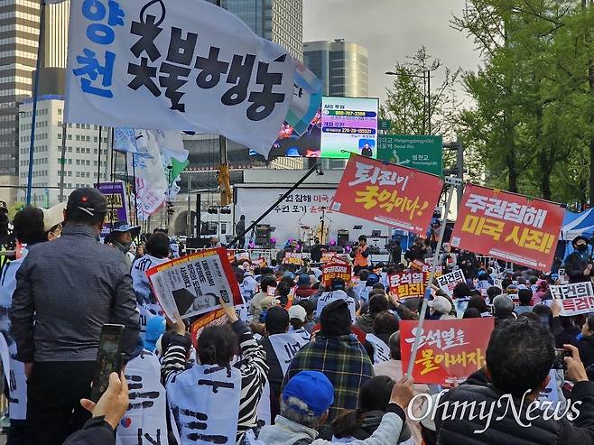 15일 오후 5시, 촛불행동은 서울숭례문과 시청 앞을 잇는 500여 미터의 세종대로에서 '윤석열 퇴진!, 김건희 특검! 4월 전국 집중 촛불대행진을 열었다. 전체 8개 차로 중 4개 차로를 꽉 채웠다. 35번째 여는 촛불집회였다.