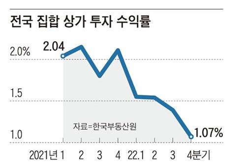 ◇ 아파트 상가 투자 수익률 1.07%로 사상 최저, 공실 급증… 불황·배달·고금리 ‘3각 파도’ 타격