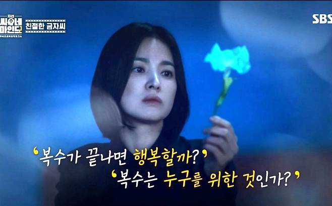 박지선 교수는 처절한 복수를 그린 인기 드라마 '더 글로리'의 문동은(송혜교 분)과 금자 씨의 삶에 유사점이 있다고 짚었다. "극 중 동은은 연진(임지연 분)에 대한 복수를 위해 교대에 가고, 연진의 집 근처에서 살며 삶의 이유가 '연진'이가 됐다"며 동은을 백 선생에게 복수하기 위해 교도소에서 13년간 사전 준비한 금자 씨와 비교했다. 이처럼 삶의 목적과 정체성이 '복수'가 된 이금자와 문동은. 박지선 교수는 이를 토대로 과연 복수가 끝나면 행복할지, 복수는 누구를 위한 것인지에 대해 중점을 두고 '친절한 금자씨'에 대한 얘기를 나눴다.