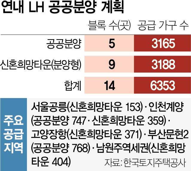 한국토지주택공사(LH)가 올해 서울 공릉, 고양 장항 등 수도권에서만 신혼희망타운을 포함해 5181가구가구의 공공분양주택을 공급한다.