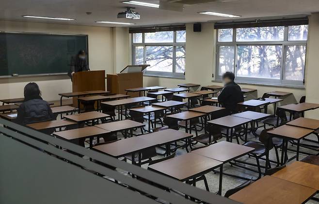 | ▲ 대학 개강일인 2일 오전 경상도 한 대학에서 수업이 진행되고 있다. 이 대학은 올해 정시 모집에서 8개 학과가 지원자 0명이었다. |