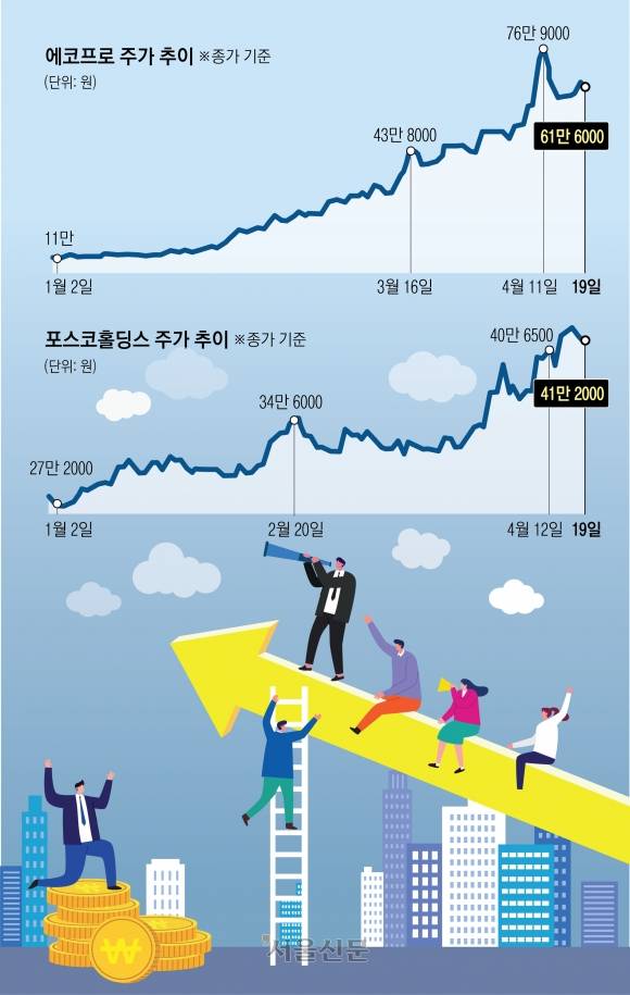 코스닥 시장을 뜨겁게 달궜던 에코프로 열풍이 잦아드는 모양새다. 그러나 2차전지주에 대한 개인 투자자들의 관심은 여전하다. 개인들은 이제 전통적인 철강주 이미지를 벗고 2차전지주로 주목받는 포스코 그룹주로 대거 몰려들고 있다. 이대로 2차전지주에 계속 투자해도 괜찮은 걸까.