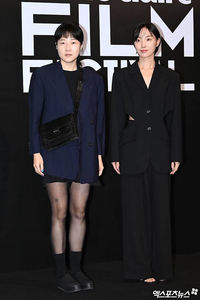 이날 행사에 참석한 유지영 감독과 배우 한해인이 ㅁ포토타임을 갖고 있다.