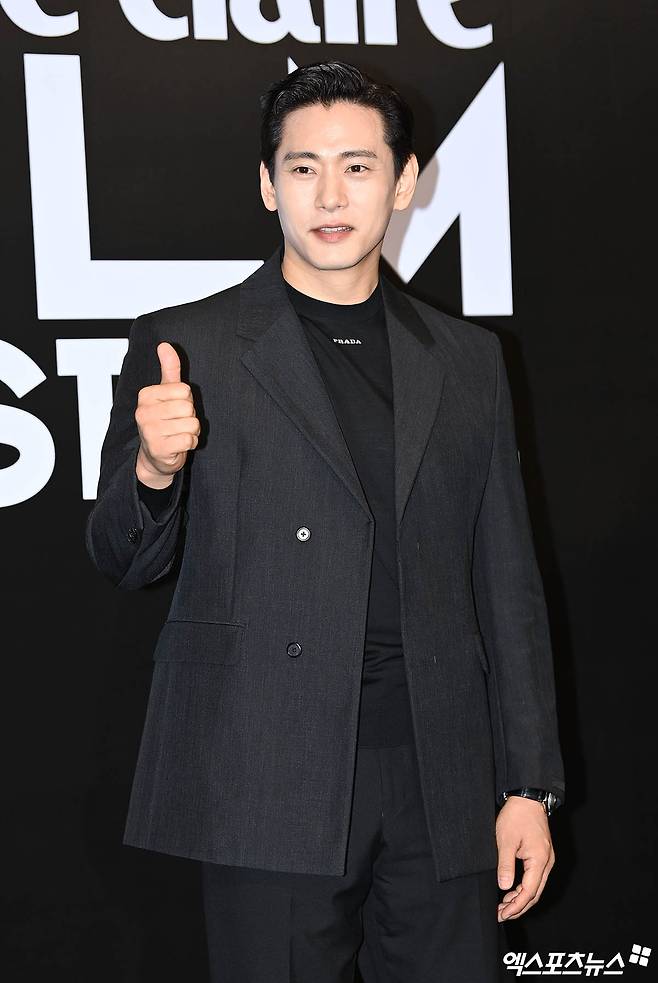 이날 행사에 참석한 배우 유태오가 포토타임을 갖고 있다.