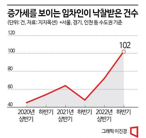 실제로 세입자가 직접 신청한 강제 경매 사례는 크게 늘고 있다. 법원경매 전문기업인 지지옥션에 따르면 지난해 하반기 서울·경기·인천 등 수도권 지역에서 임차인이 집주인을 상대로 경매를 신청한 규모는 총 521건으로 나타났다. 이는 2020년 하반기(319건), 2021년 하반기(410건)에 이어 매년 100건 넘게 증가한 수치다.