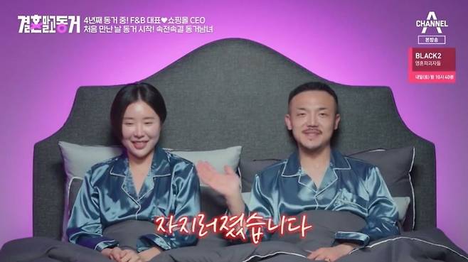 21일 방영된 채널A '결혼 말고 동거'에는 새로운 동거 커플이 공개됐다. F&B회사를 운영하는 도경학(35)씨와 쇼핑몰을 운영하는 이은제(32)씨다.