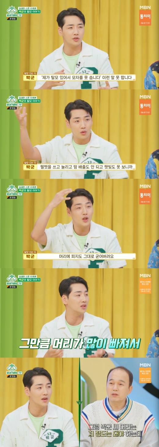 이날 박군에게 “군대에 있으면 (탈모) 관리하기 힘들 텐데”라고 하자 박군은 “군에서 훈련하다 보면 내가 탈모가 있어서 훈련할 때 모자를 못 쓴다는 말을 못 한다”라며 입을 열었다.