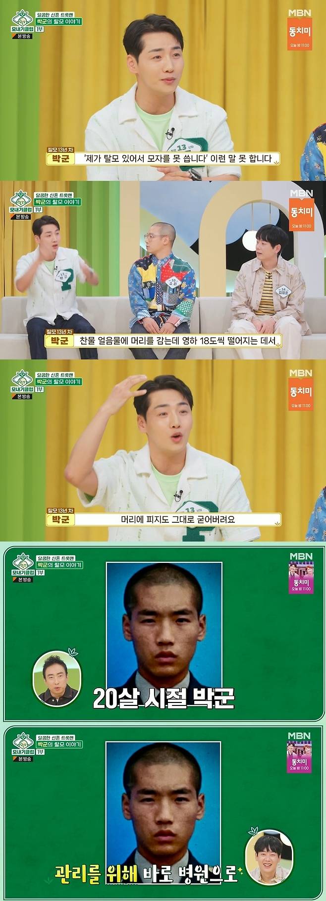 그는 "군에 있으면 탈모가 있다고 해서 모자를 안 쓰겠다고 못 한다. 헬멧 쓰고 눌리고 땀 배출 안되고 햇빛을 못 보니까 머리가 빠질 수 밖에 없다"며 탈모 고충을 이야기했다.