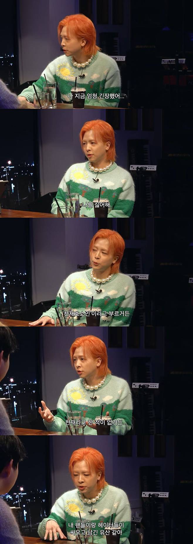 지올팍은 "그래서 시청자들을 이해한다. 사실 이렇게까지 될 줄은 몰랐다. 아직도 잘 모르겠다"며 "근데 요즘에는 많은 사람들이 나를 싫어한다. 근데 그게 좋다. 그들은 '천재호소인'이라 부른다. 천재호소인은 천재로 보이고 싶은 사람을 뜻한다. 근데 나는 한 번도 나보고 천재라고 한 적이 없다. 이 별명이 싫었는데 이제 그 별명이 좋다. 내 팬들과 헤이터들이 싸우고 남긴 유산 같다"고 솔직하게 털어놨다.