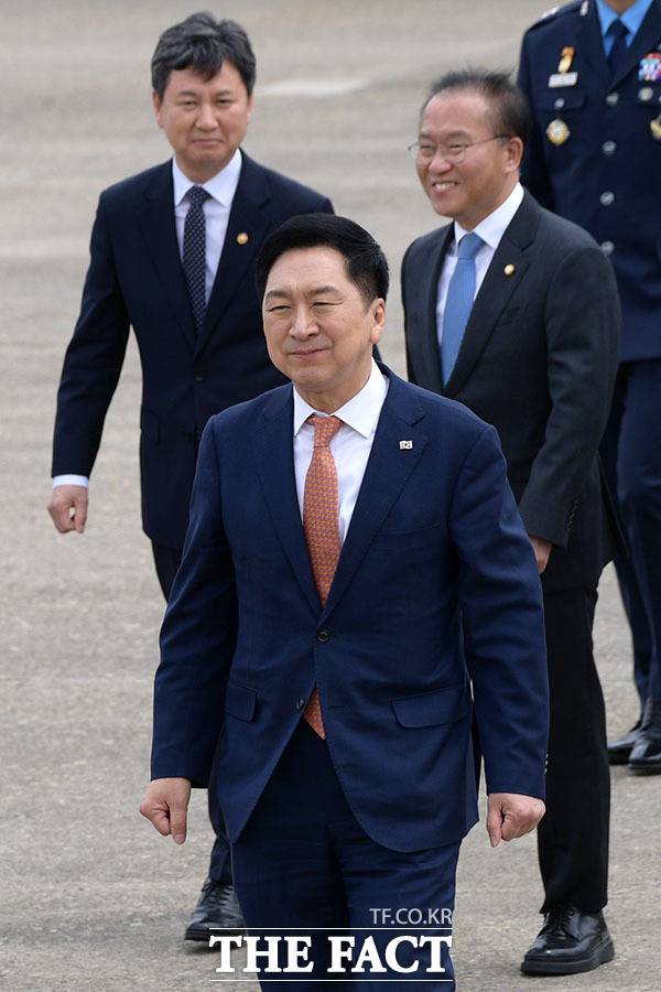 [더팩트ㅣ성남=남윤호 기자] 미국 국빈 방문에 나서는 윤석열 대통령이 24일 오전 경기도 성남시 서울공항에서 공군 1호기에 탑승하며 인사를 하고 있다. 왼쪽은 김건희 여사.