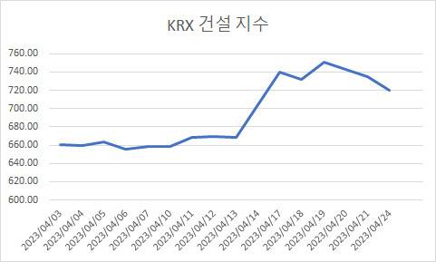 고금리 상황 속에서 지난해 10월 본격화한 레고랜드발 부동산 PF 우려에 약세를 면치 못했던 건설주는 최근 반등하는 모습이다. 박세라 신영증권 연구원은 “레고랜드 부동산PF 사태로 시스템 전반의 붕괴를 걱정했던 것과 달리 정부의 적극적인 규제 완화와 유동성 지원에 힘입어 점차 대응 가능한 영역으로 진입하고 있다”며 “아울러 상반기 기준금리 동결로 금리 정점을 확인하며 변동성이 줄어 가장 피해가 컸던 건설산업에 대해서도 투자심리가 회복되고 있다”고 밝혔다.