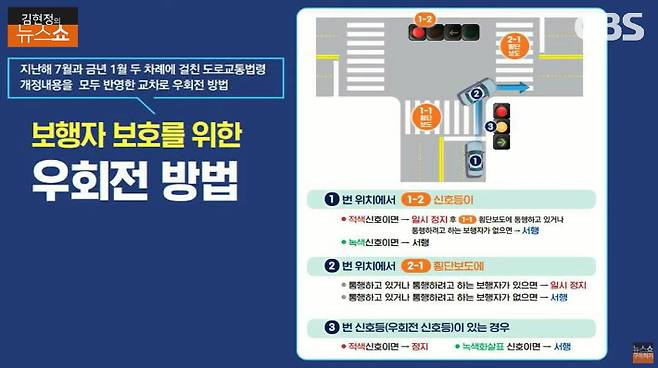 ◇ 김현정> 그렇죠. 그러니까 우회전 차량에 대해서는 그동안 상당히 관대했어요. 굉장히 관대했는데 어떻게 바뀐 건지 시행 규칙에 들어간 두 문장을 딱 소개해 주시죠.