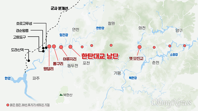 | ▲ 한반도에 남아있는 38선 표지석 위치 |