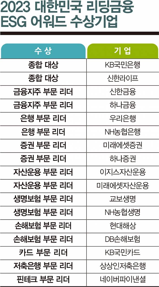 [2023 ESG어워드] 글로벌 투자 규범 ESG, 금융리더가 이끈다
