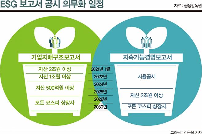 기후 관련 재무정보공개 태스크포스(TCFD)와 지속가능성회계기준위원회(SASB) 등 현존하는 기존 프레임워크를 활용해 ESG 공시기준을 제정한다는 방침이다.
