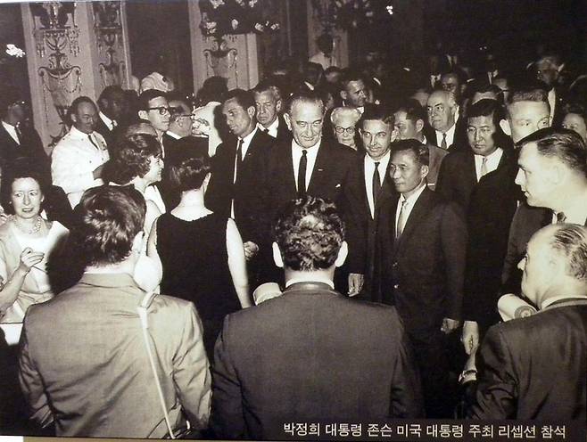 | ▲ 박정희 대통령과의 연회에 참석한 린든 존슨 대통령(가운데). 서울시 마포구 상암동의 박정희대통령기념도서관에서 찍은 사진. |