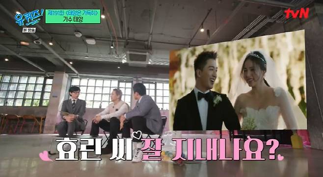 이날 태양은 아내 민효린의 근황에 대해 "아기 케어하면서 지내고 있다. 그리고 내 앨범이 나온다고 하면 아이디어를 정말 많이 내준다"고 밝혔다.