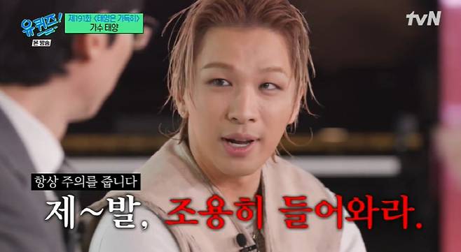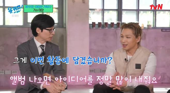 26일 방송된 tvN '유 퀴즈 온 더 블럭'의 '태양은 가득히' 특집에는 태양이 게스트로 출연했다.