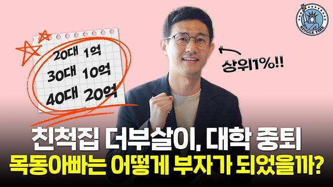 ※ 이 기사는 2030 세대의 경제적 자유를 위한 투자 정보를 제공하는 유튜브 채널 '싱글파이어'에 업로드된 영상을 바탕으로 작성됐습니다. '목동아빠'님이 설명하는 더 구체적인 노하우는 영상을 참고해 주세요. 오는 2일 2편 영상이 공개될 예정입니다. '싱글파이어'에 오시면 더 많은 영상을 보실 수 있습니다.
