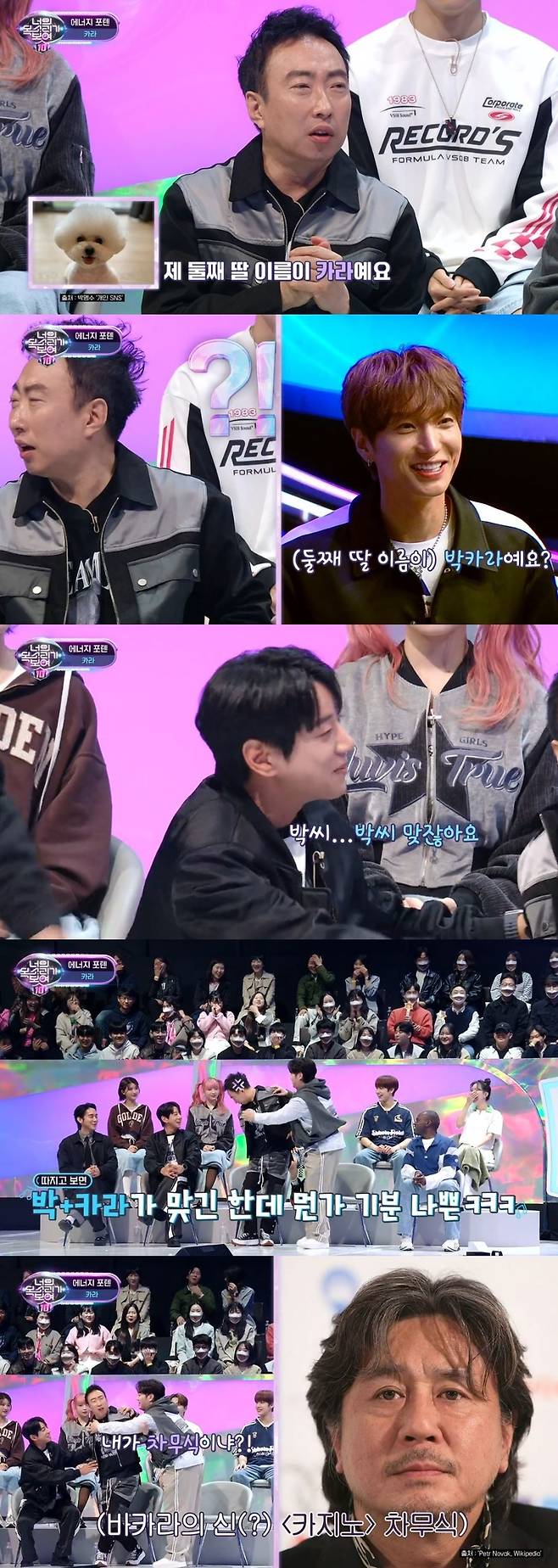 박명수는 "니콜 양과 '고래'라는 노래를 함께 불렀다"며 인연을 자랑했다. 이어 그는 "그리고 내 둘째 딸 이름이 카라다"라고 이야기했다.