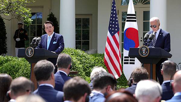 윤석열 대통령과 조 바이든 미국 대통령은 현지시간 26일 미국 워싱턴DC 백악관에서 정상회담을 하고 북한의 핵공격 가능성에 대비한 '핵 협의그룹' 신설 제안 등 확장억제를 강화하는 '워싱턴 선언'을 발표했습니다.