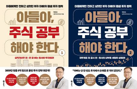 ‘아들아 주식공부 해야한다’는 총 두 권으로, 1권은 실적개선주 편(돈 잘버는 회사에 투자해라)이다. 주식투자 기초지식부터 시작해 투자 마인드, 실전투자 사례, 투자전략 등을 다뤘다. 증권사 리포트 분석표, 데일리 투자노트, 실적개선주만을 위한 5단계 종목분석표 등 구체적인 실천방법도 제시한다. 배당주, 상장지수펀드(ETF), 스팩, 리츠 등도 포함하고 있다.