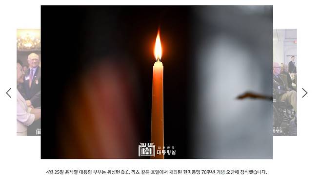 | ▲ 4월 25일 대통령실이 게재한 '한미동맹 70주년 기념 오찬' 사진뉴스 중 촛불 사진. |