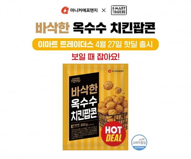 육가공 전문 코스닥 상장사 마니커에프앤지는 이마트 트레이더스와 공동 기획한 '바삭한옥수수치킨팝콘'을 한정 판매한다고 27일 밝혔다.