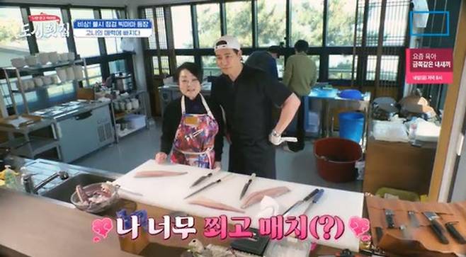 회를 담당하는 이태곤 역시 이혜정의 등장에 긴장한 모습을 보였다. 이혜정은 영상으로 봤을 때는 걱정스럽다는 반응을 보였던 바. 그러나 부시리를 꺼내든 이태곤의 물고기 손질 모습을 지켜 본 이혜정은 “완전 전문가이신데?”라고 말하며 휴대폰 영상에 담았다. 이어 “이거 완전히 장관인데? 태곤 씨가 하니까 더 멋있다”라고 칭찬했다.