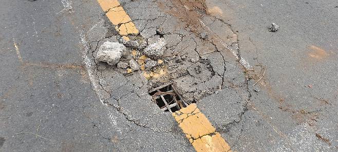 | ▲ 지난 19일 충남 홍성군 결성면 교항리에 위치한 와룡교에서 포트홀이 발견됐다. |