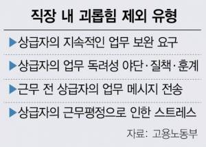 직장 내 괴롭힘으로 극단적인 선택을 하는 근로자가 끊이지 않는 가운데 주무 부처인 고용노동부가 직장에서 업무 보완을 계속 요구하는 행위에 대해서는 원칙적으로 괴롭힘으로 볼 수 없다는 판단을 내렸다. 거듭된 업무 보완 지시도 업무상 필요하다는 논리인데 현장에서는 업무 지시를 통한 갑질이 만연해 있어 현실을 너무 모른다는 지적이 일고 있다.