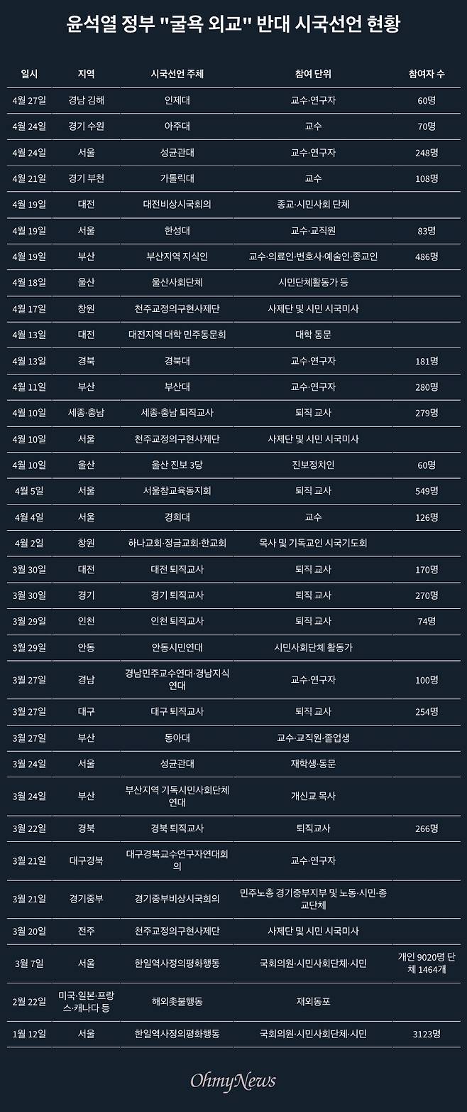 3월 27일 / 경남 / 경남민주교수연대·경남지식연대 / 교수·연구자 / 100명 / https://omn.kr/238vm