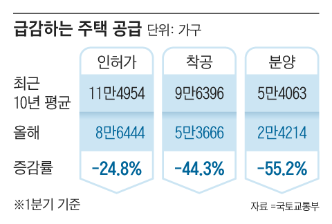 주택 착공, 평년 비해 반토막… 공급 부족에 집값 자극할 우려