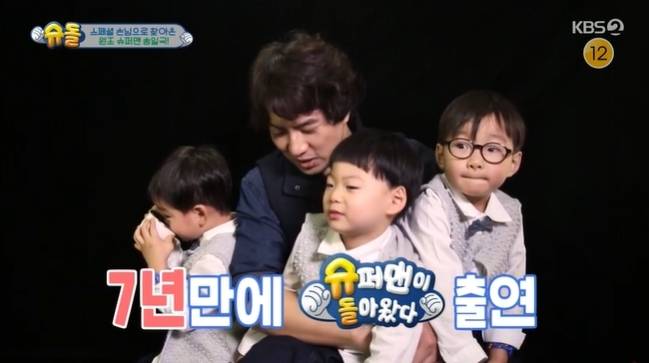 한편, "오랜만에 '슈돌'에 나와 기쁘다"고 말한 송일국은 "삼둥이를 사랑해주신 시청자 여러분께 감사하다"는 마음을 전했다.(사진=KBS 2TV '슈퍼맨이 돌아왔다' 방송 캡처)