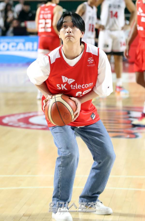 그룹 2PM 찬성이 시투자로 나와 슛을 하고 있다.