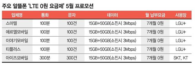 하지만 알뜰폰 업계에서는 4월부터 시작된 'LTE 0원 요금제' 경쟁이 5월에도 이어지고 있다.