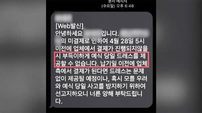 메이크업과 드레스를 맡은 업체가 지난주, 결혼식을 하루 앞두고 갑자기 일을 못하겠다고 통보해 온 겁니다.