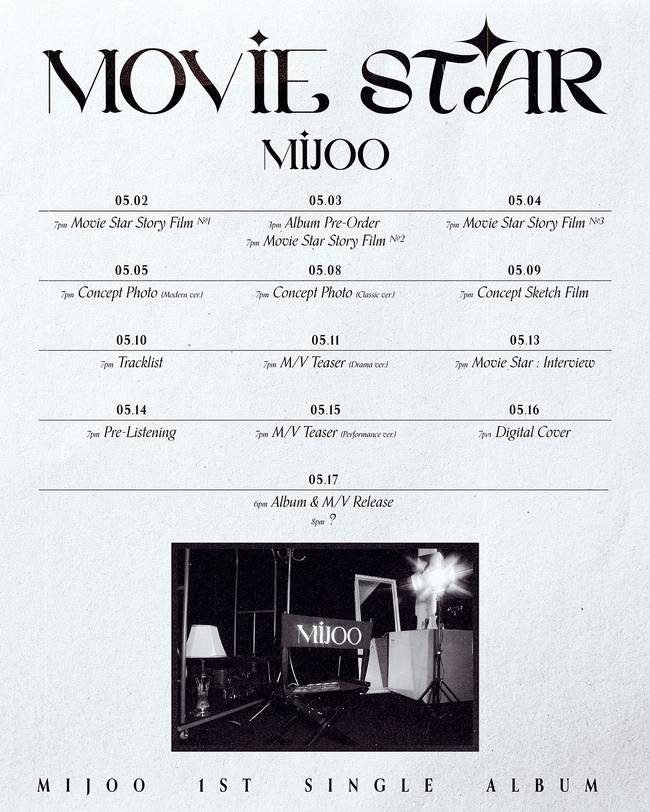 미주는 솔로 데뷔를 앞두고 콘셉트 포토, 트랙리스트, 뮤직비디오 티저, 프리 리스닝 등 다채로운 티징 콘텐츠를 차례로 선보인다. 특히, 최근 오픈한 공식 유튜브 채널에 2일부터 3편의 스토리 필름을 업로드한다. 미주의 데뷔 시절부터 현재까지의 모습을 담아내며 'MOVIE STAR' 스토리와의 연결성을 가져갈 계획이다.