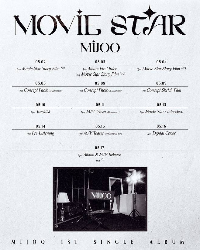 소속사 안테나는 “미주가 오는 17일 솔로 데뷔 싱글 ‘무비 스타’(MOVIE STAR)를 발매한다”고 2일 밝혔다.