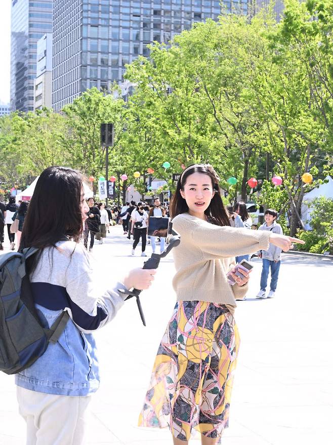 코로나19 의무 격리가 해제되면서 해외 인플루언서들도 우리나라를 많이 찾고 있습니다. 서울 광화문광장에서 외국인 인플루언서가 한국의 문화를 알리고 있습니다. 이 콘텐츠를 보고 한국에 대해 더 많이 알았으면 하고 바라봅니다.