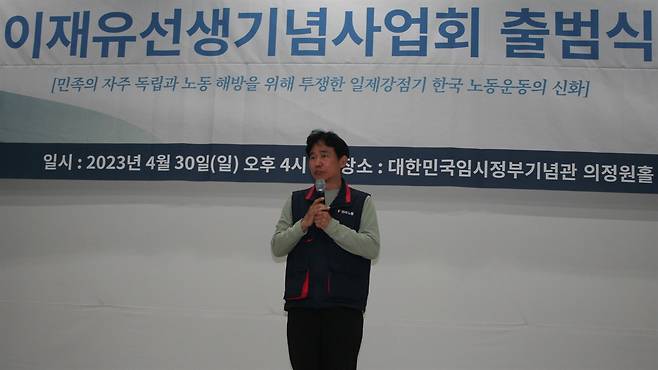 출범식은 김명환 전 민주노총 위원장의 사회로 <이재유 나의 시대 나의 혁명> 저자인 김경일 한국학중앙연구원 명예교수의 기고 글 낭독, 문진오 민중가수의 기념공연에 이어 기념사업회 창립총회, 창립선언문 낭독의 순으로 진행됐다.
