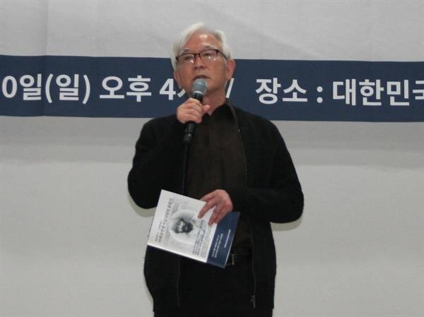 | ▲ 진행하는 김명환 김명환 세계노동운동사연구회 이사장이 이재유기념사업회 출범식의 사회를 맡아 진행하고 있다. |